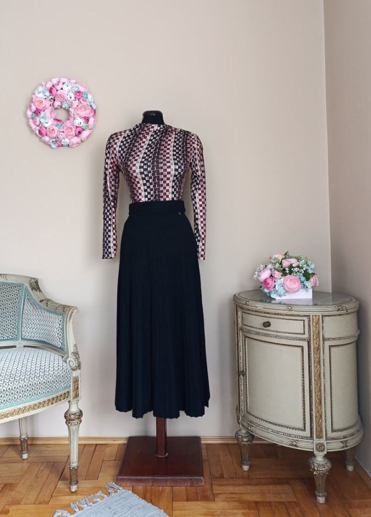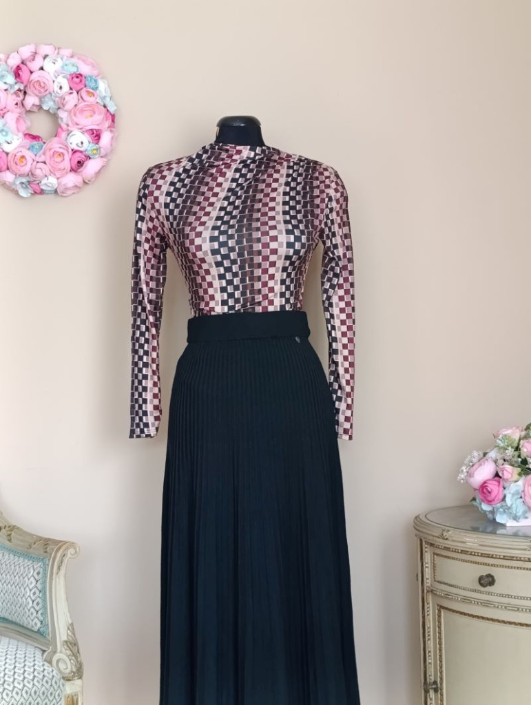 Anyaga nagyon puha, kellemes viselet. Szinek a felsőn: bordó, barna, bézs, fekete