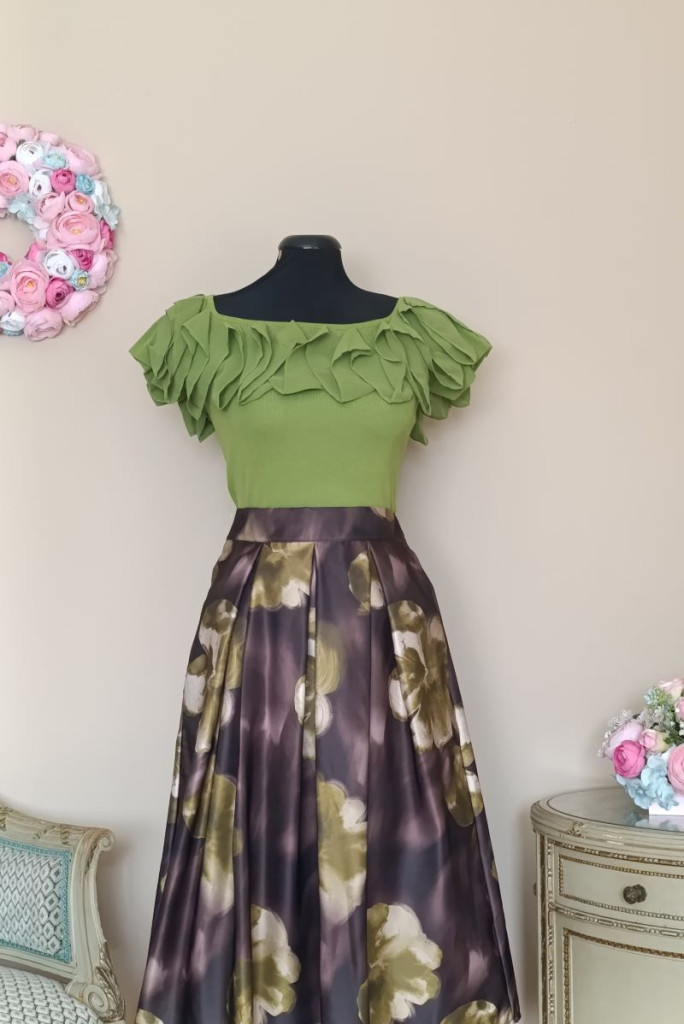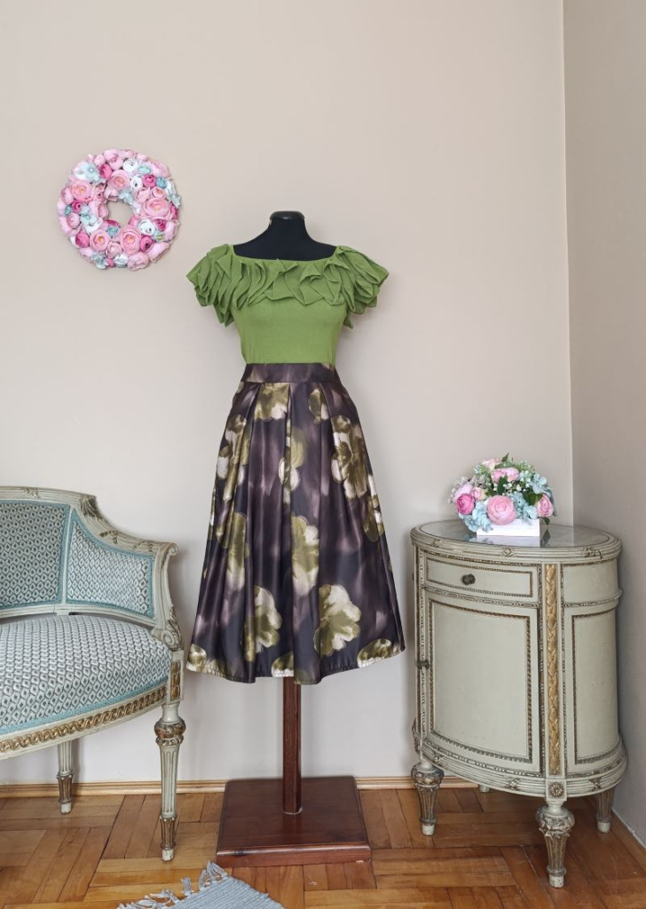 A szoknya méret nélküli, S-L méretig ajánlott. Hossza 72 cm, dereka hátul gumis 68-87 cm-ig jó, a szoknya zsebes :)
