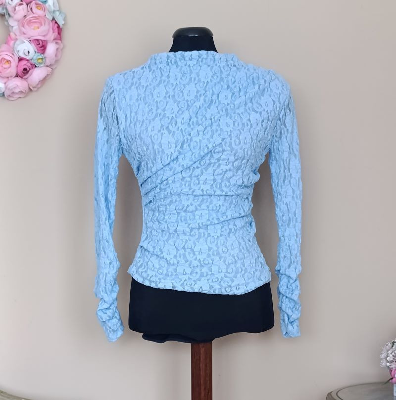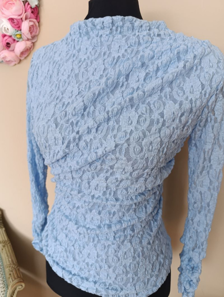 A felső méret nélküli, S-M méretig ajánlott. Hossza 52 cm, mellbősége 86-102 cm-ig jó. Karja átlátszó, a felső többi része viszont bélelt.
