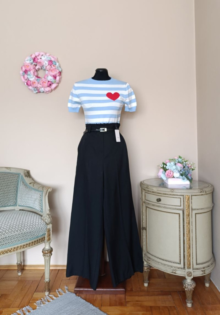 A nadrág S, M, L méretben elérhető, dereka hátul gumis.