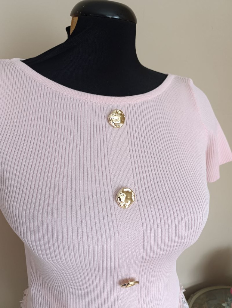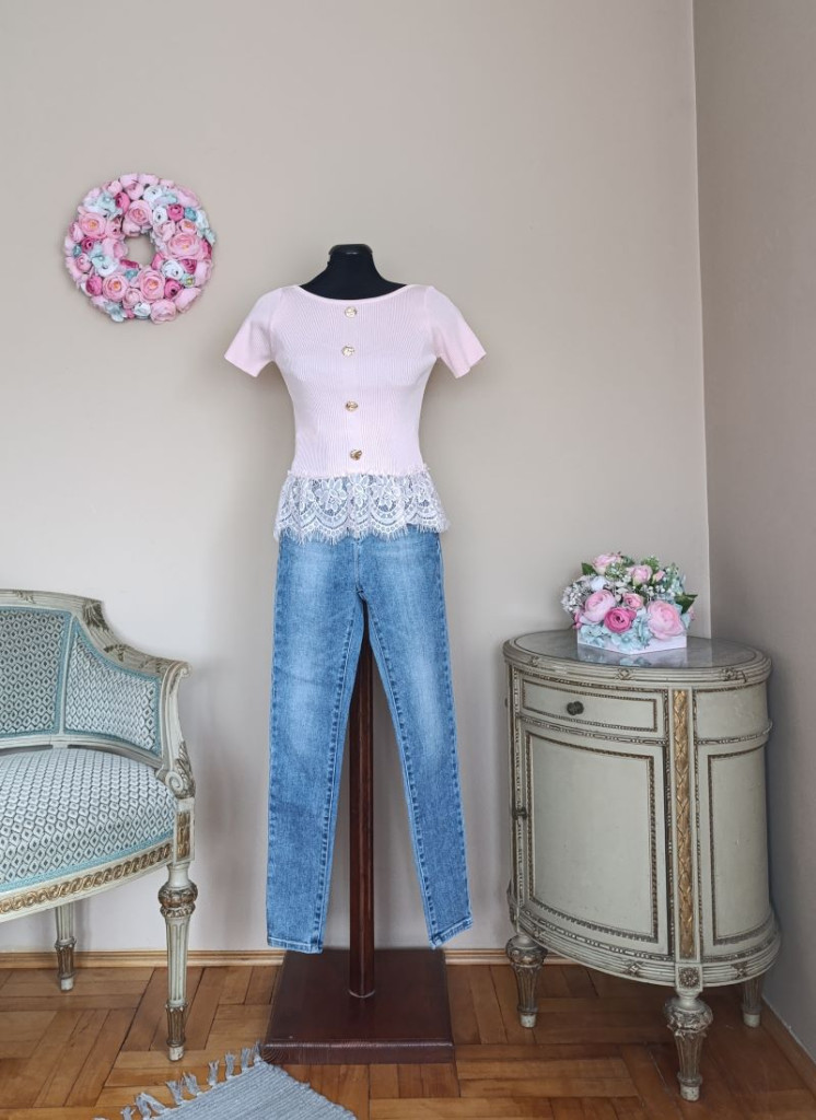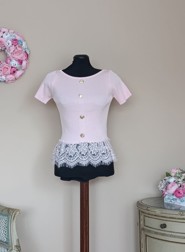A felső anyagában bordázott, méret nélküli, XS-M, kisebb L méretig ajánlott. Teljes hossza 56 cm, ebből a csipke 12 cm, mellbőségeb 80-100 cm-ig jó.