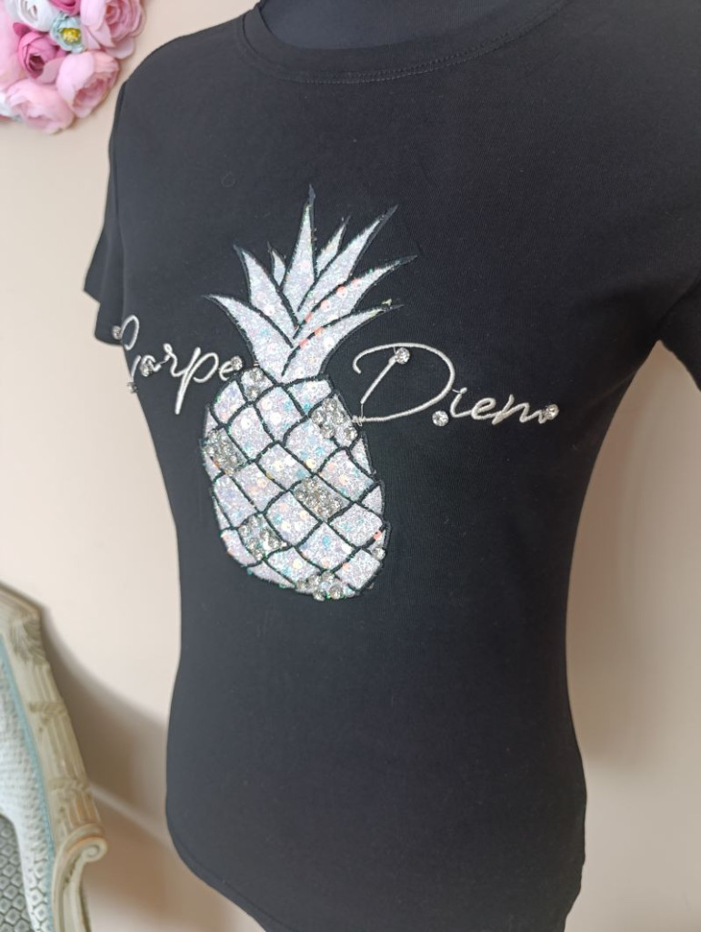 A póló méret nélküli, S-L méretig ajánlott. Hossza 59 cm, mellbősége 84-104 cm-ig jó.