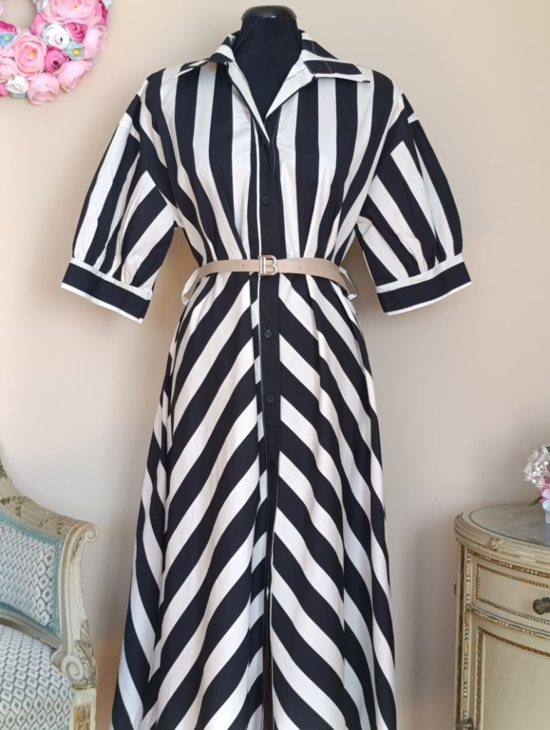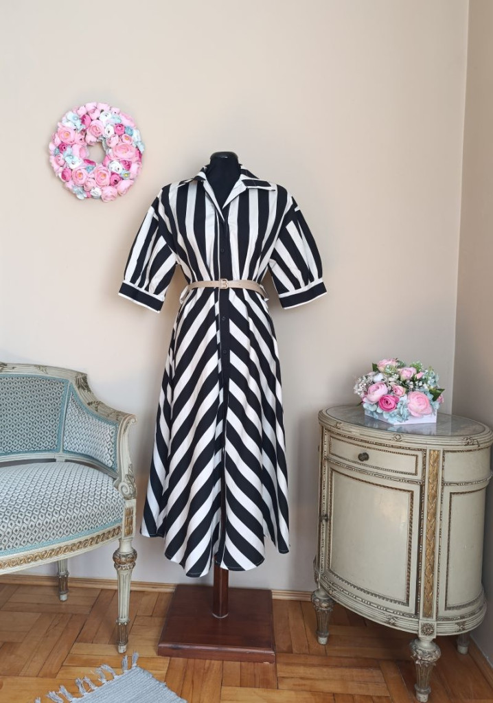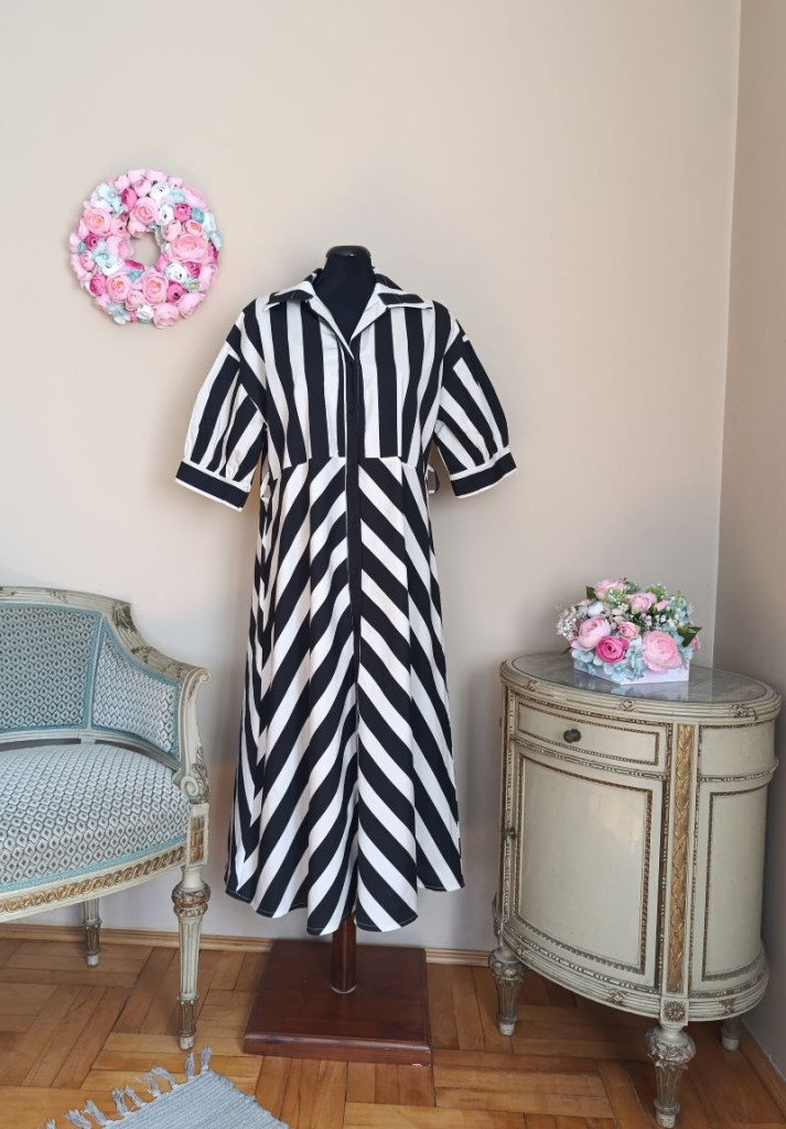 Csíkos ingruha fekete-fehér