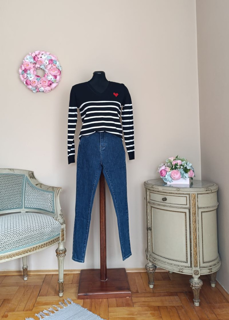Csíkos pulcsi fekete-fehér