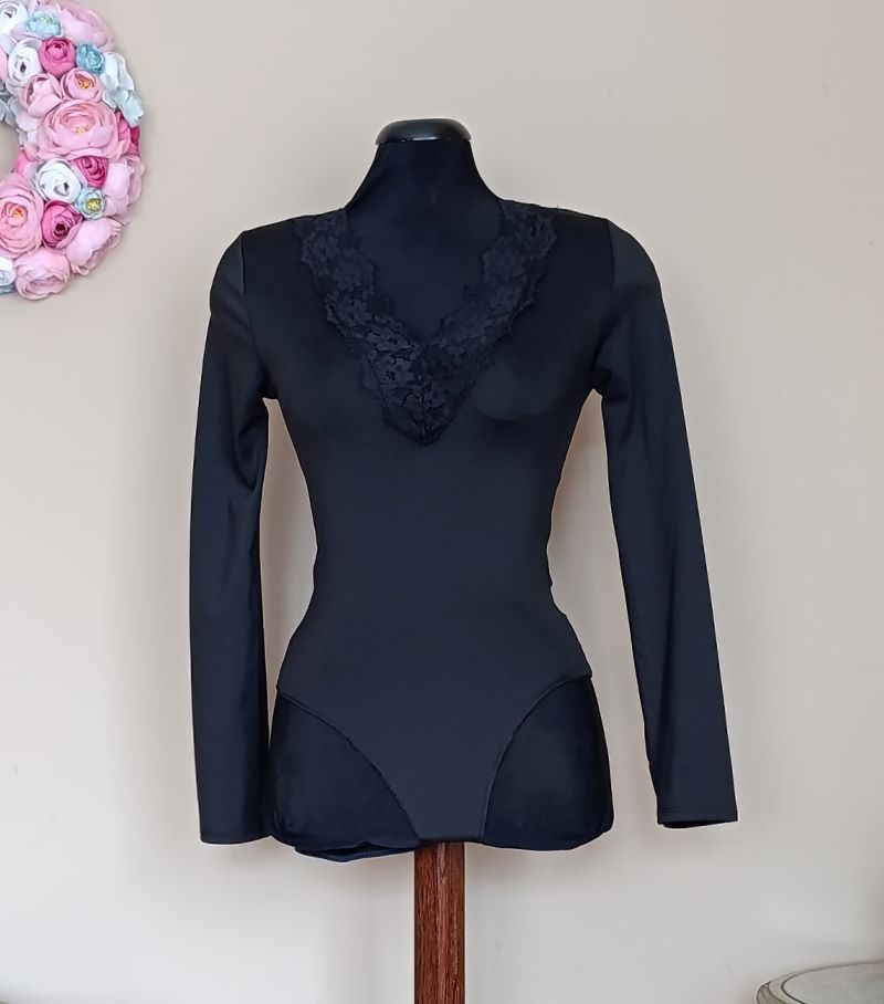A body rugalmas anyagú, feszülős, méret nélküli fazon, ami S-M méretig ajánlott. Mellbősége 82-102 cm-ig nyúlik