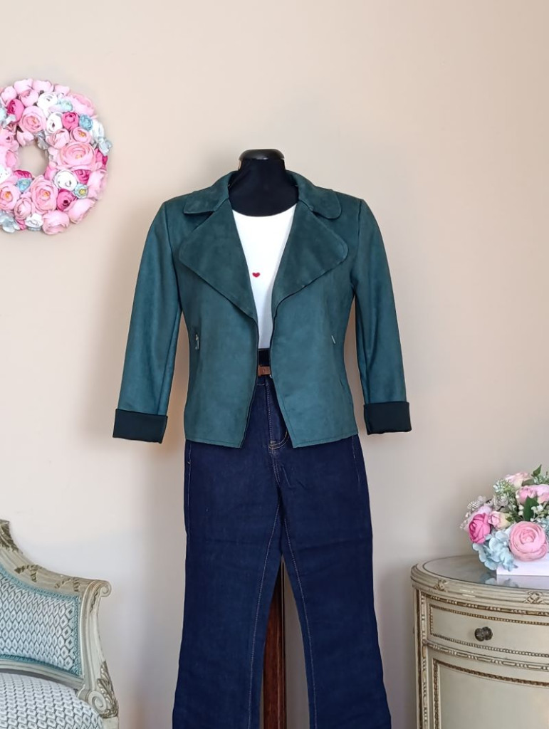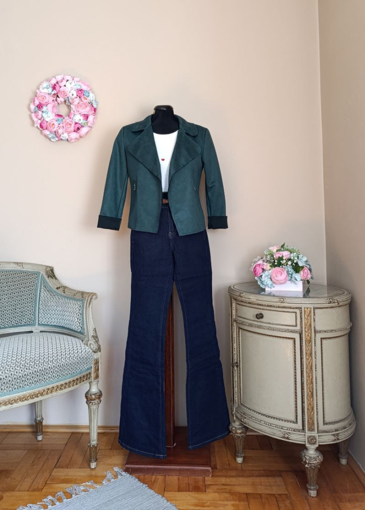A kabát méret nélküli S-L méretig ajánlott. Rugalmas anyagú, hossza hátul 52 cm