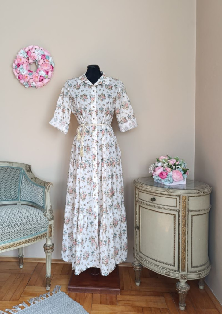A ruha méret nélküli, erősebb S mérettől L méretig ajánlott. Hossza 130 cm, mellbősége 105 cm, derék maximum 100 cm ( de az övvel szűkíthető)