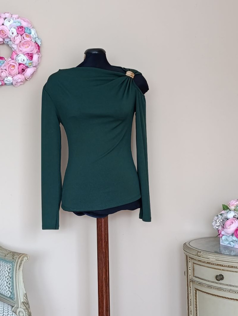 Hossza 59 cm, mellbősége 88-106 cm-ig nyúlik . Bal vállán kivágott.