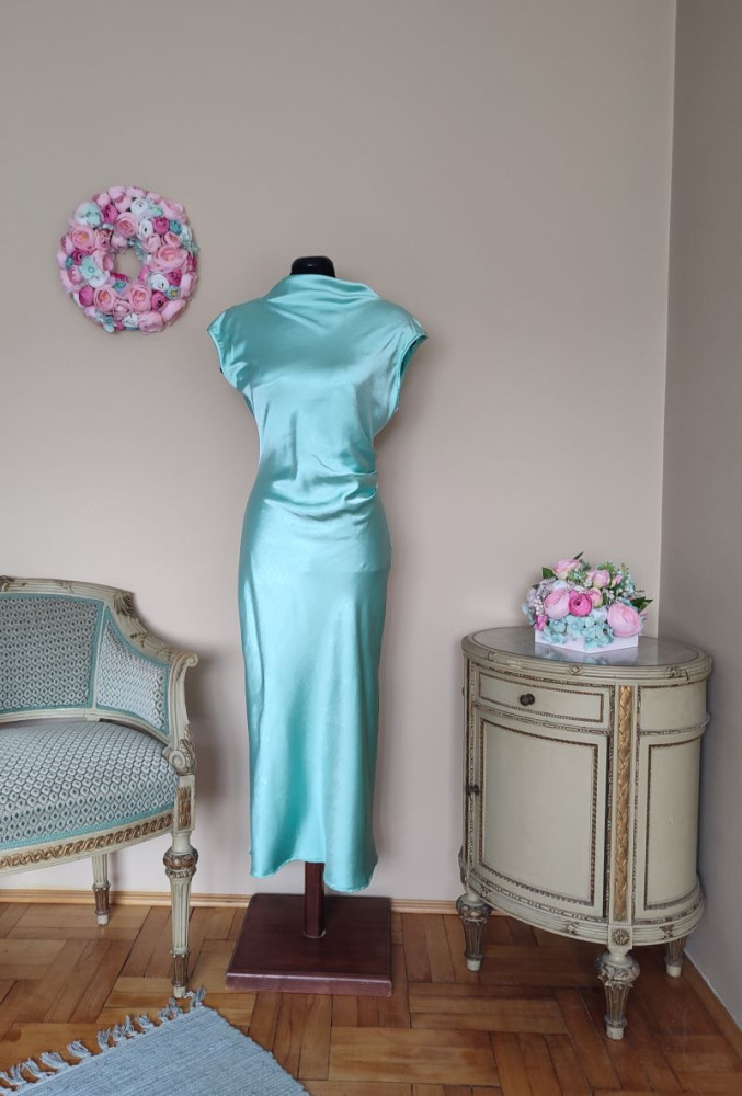 A ruha méret nélküli S-M, kisebb L méretig ajánlott. Hossza 163 cm, mellbősége 94-100 cm-ig jó, derék 72-80 cm-ig jó, csípő 102 cm-ig,