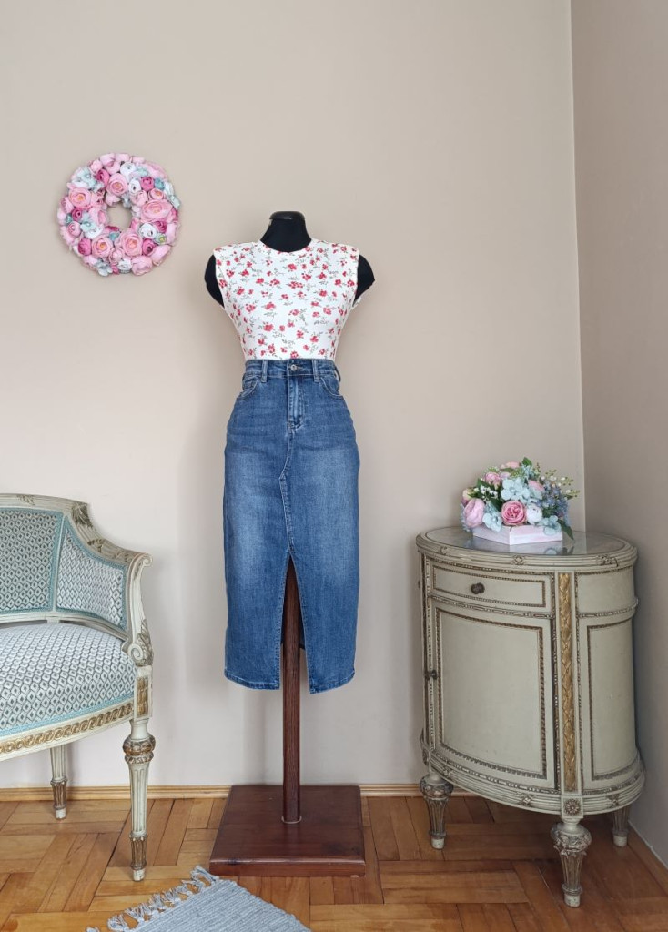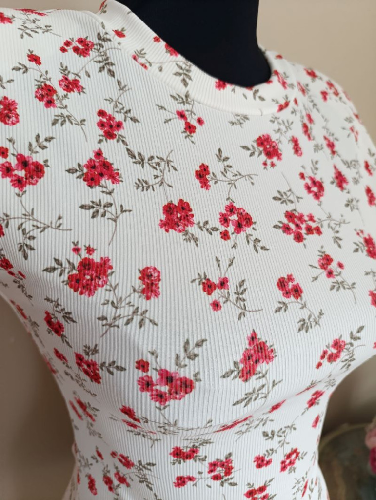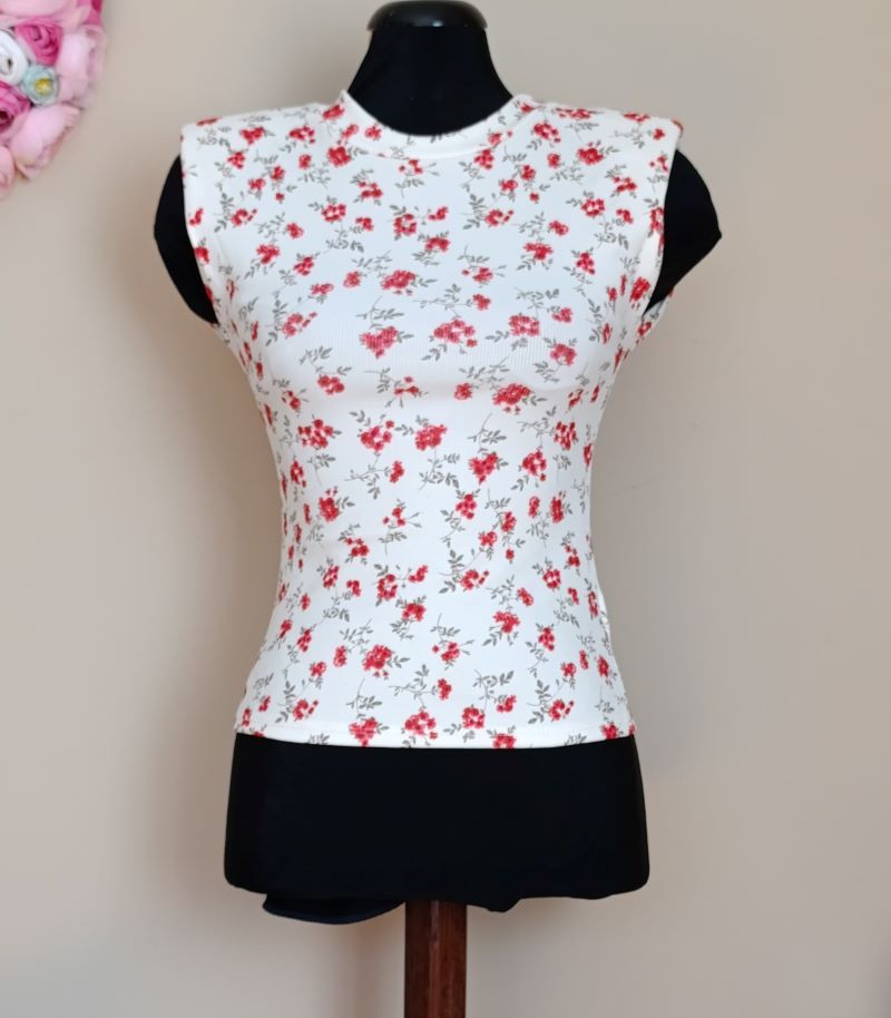 A felső anyagában vékonyan bordázott, méret nélküli, XS-M méretig ajánlott. Hossza 52 cm, mellbősége 80-96 cm-ig jó (nyúlik tovább is, csak akkor a minta