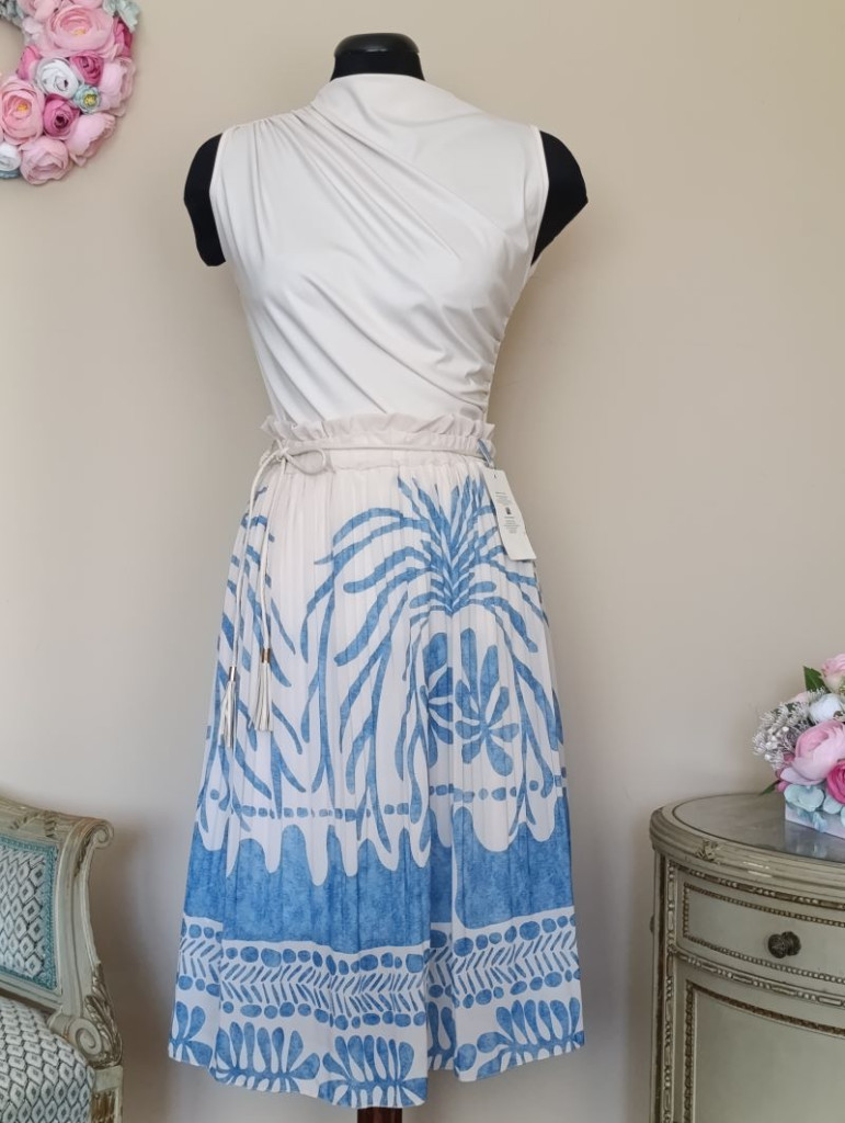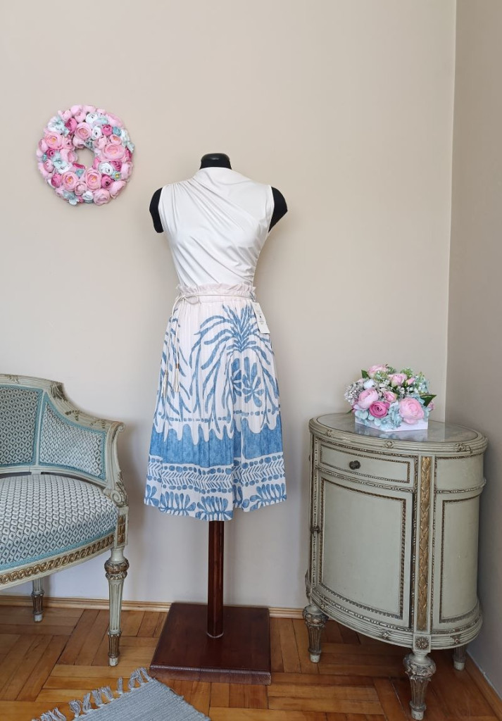 Kék mintás pliszírozott szoknya