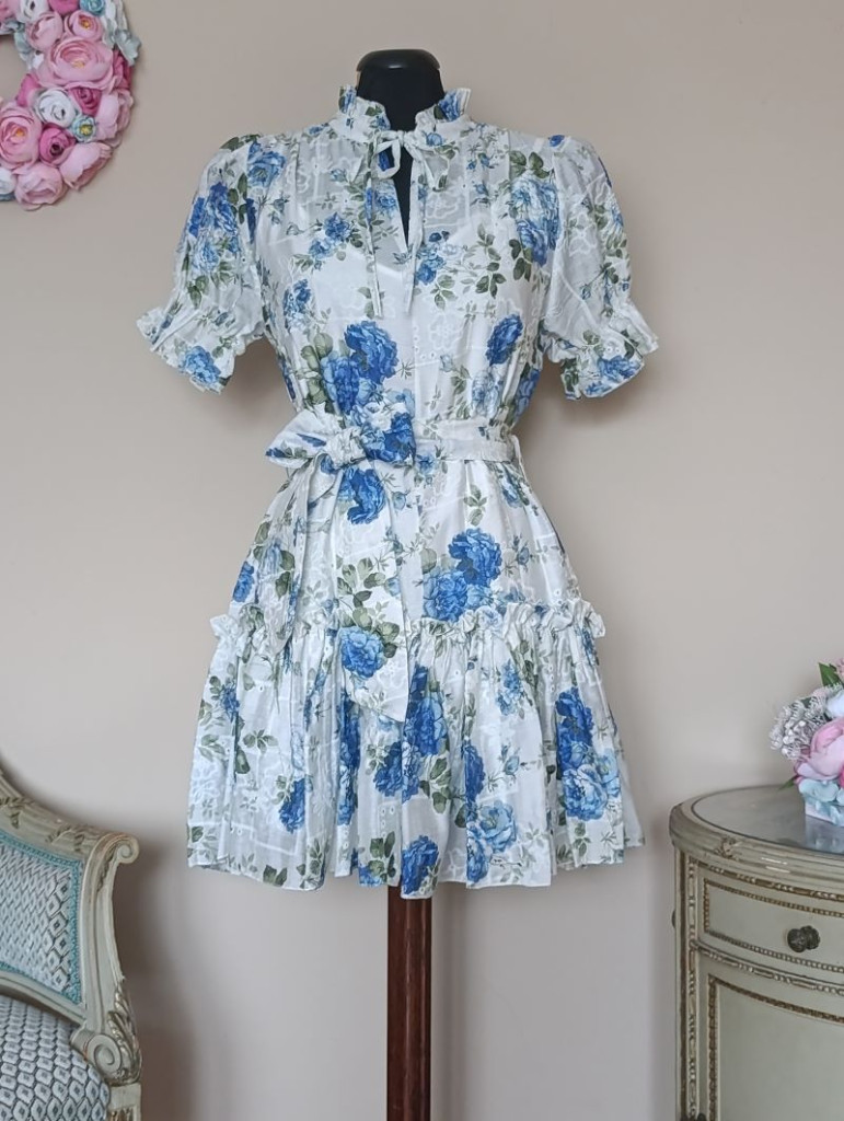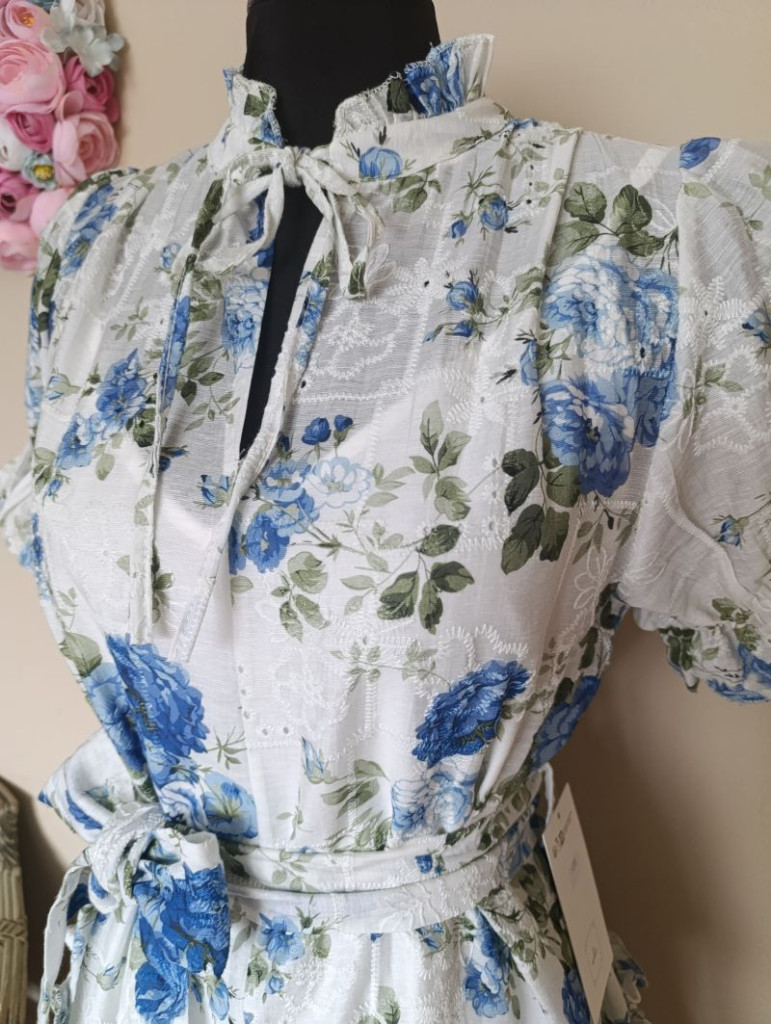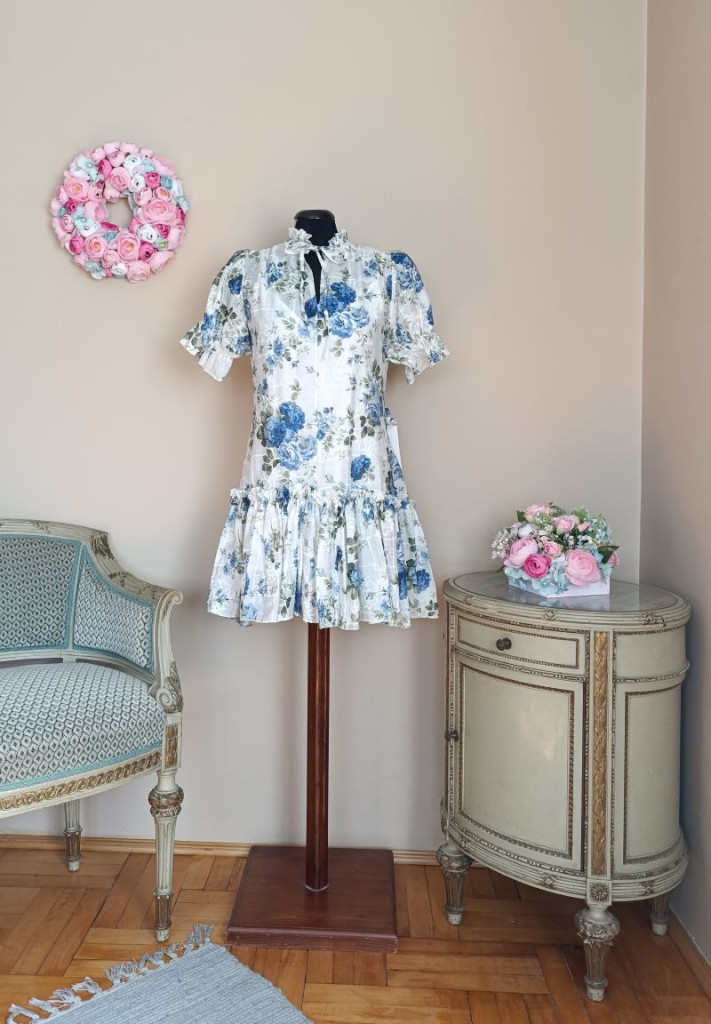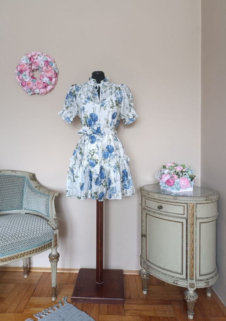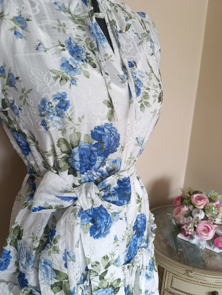 Kék virágos madeirás ruha