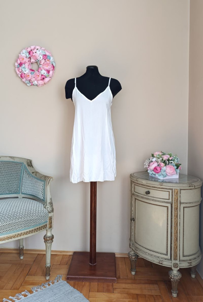 Tartozik hozzá egy trikós ruha is ( így biztosan nem lesz átlátszó), ennek a hossza 83 cm, mellbősége 102 cm-ig nyúlik