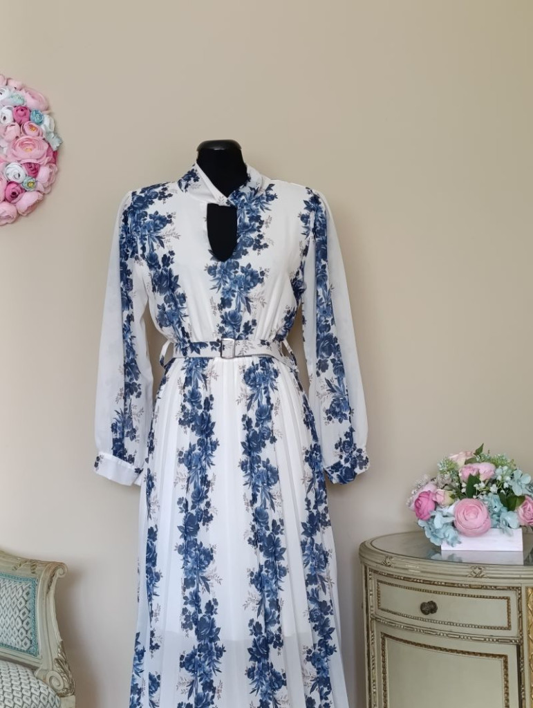 A ruha méret nélküli, S-L méretig ajánlott. Hossza 123 cm, mellbősége 90-103 cm-ig jó, alsó szoknya hossza 28 cm-rel rövidebb