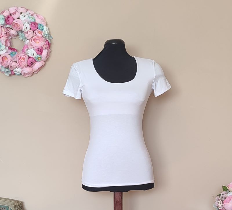 A póló dupla elejű, méret nélküli, S-L méretig ajánlott.