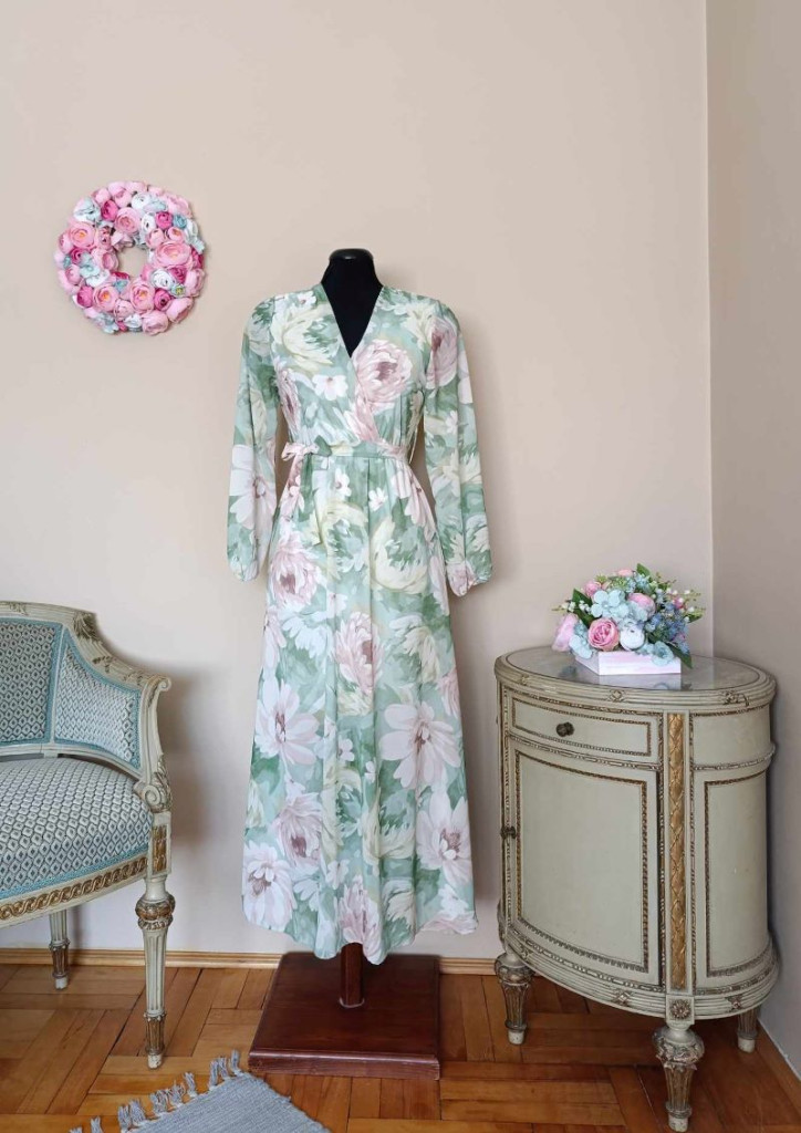 A ruha méret nélküli, S-L méretig ajánlott. Hossza 129 cm ( alsó szoknya hossza 40 cm-rel rövidebb), mellbősége 90-104 cm-ig jó. Az öv résznél gumis a ruha