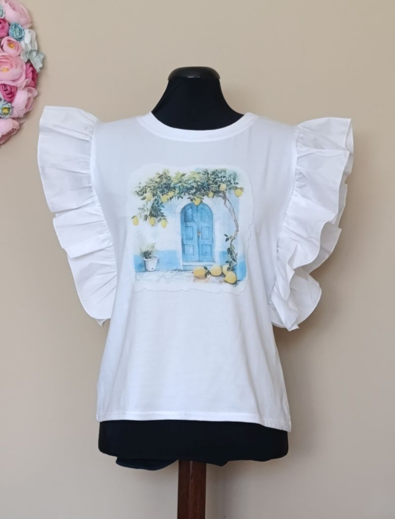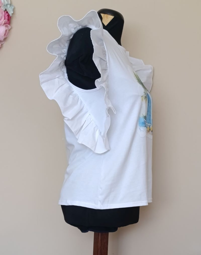 A póló méret nélküli, M- L méretig ajánlott. Hossza 58 cm, mellbősége 94-110 cm-ig jó
