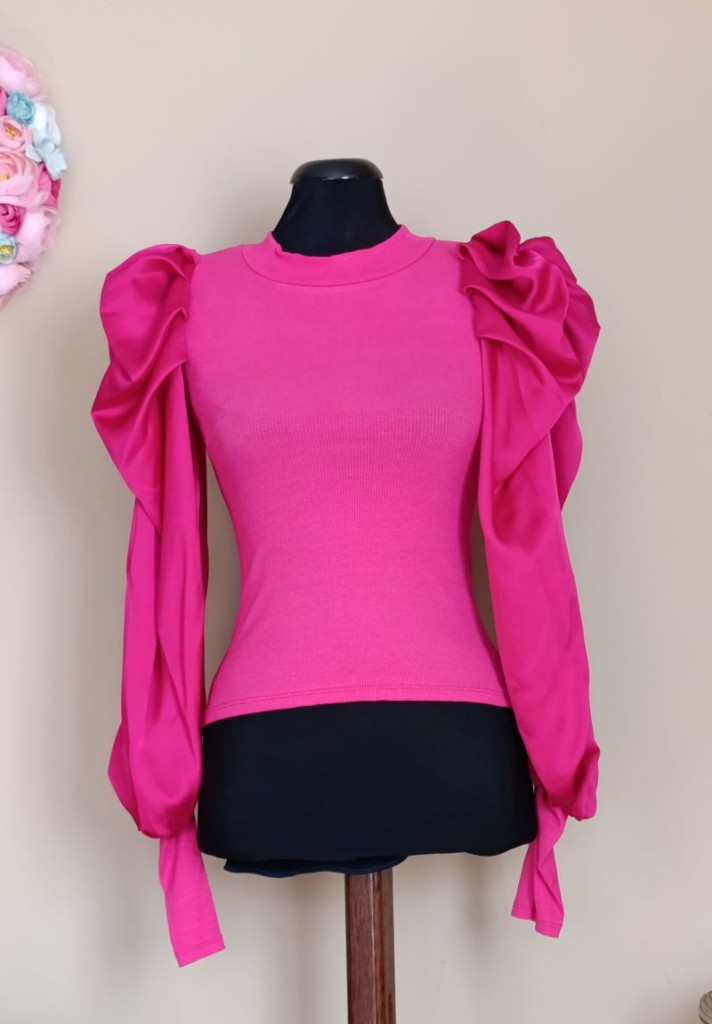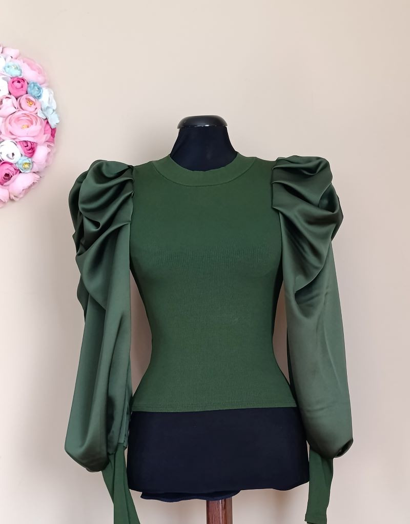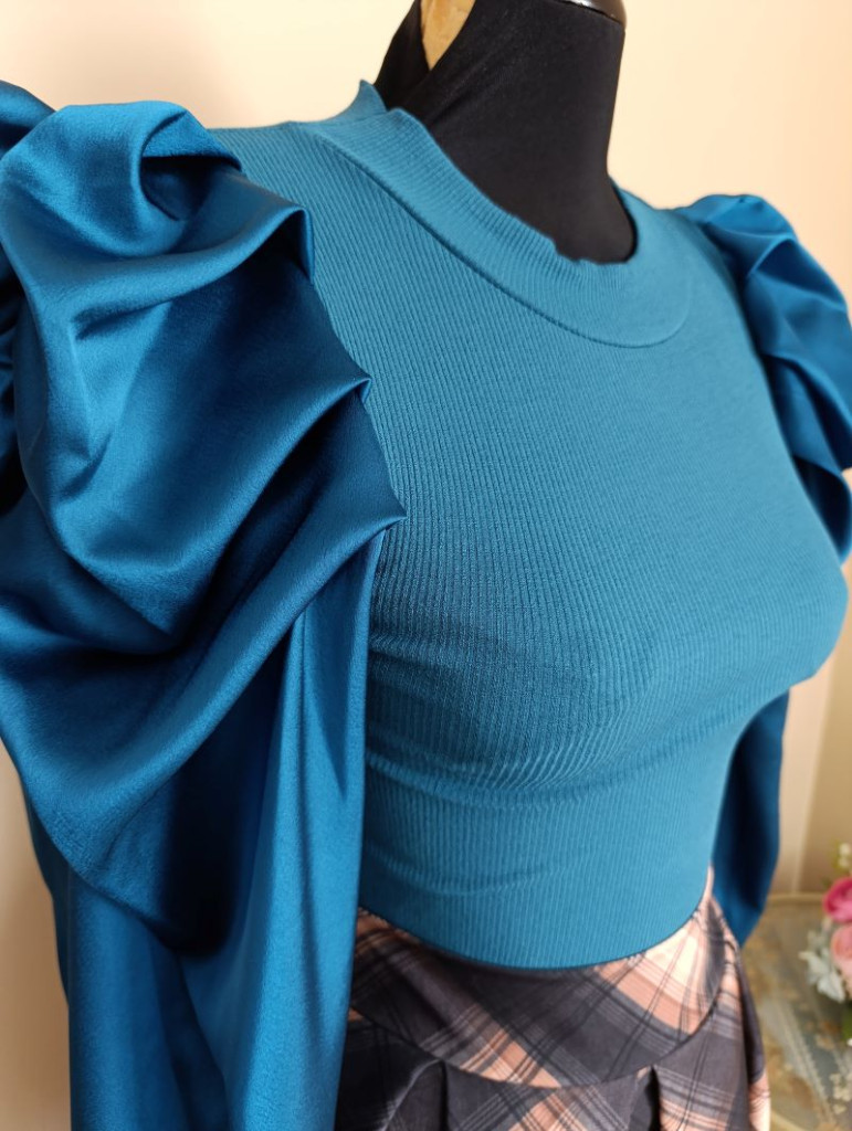 A felső anyagában vékonyan bordázott, karja pedig selyem hatasú, csuklónál szűkített fazonú. Méret nélküli, XS-M méretig ajánlott.