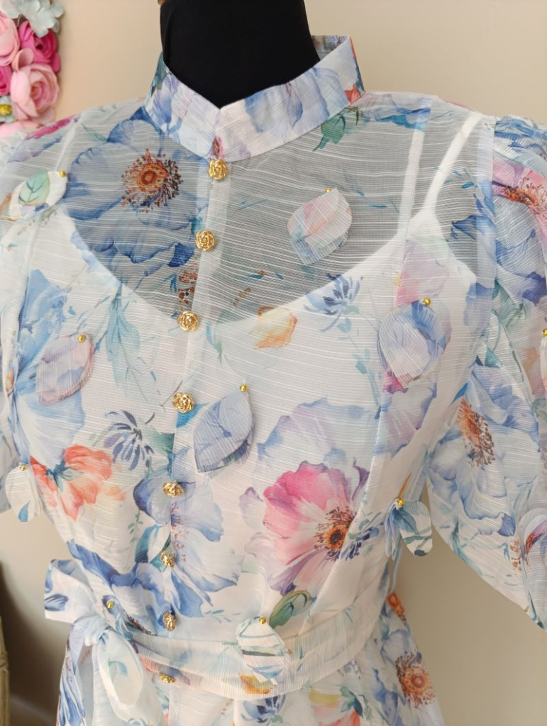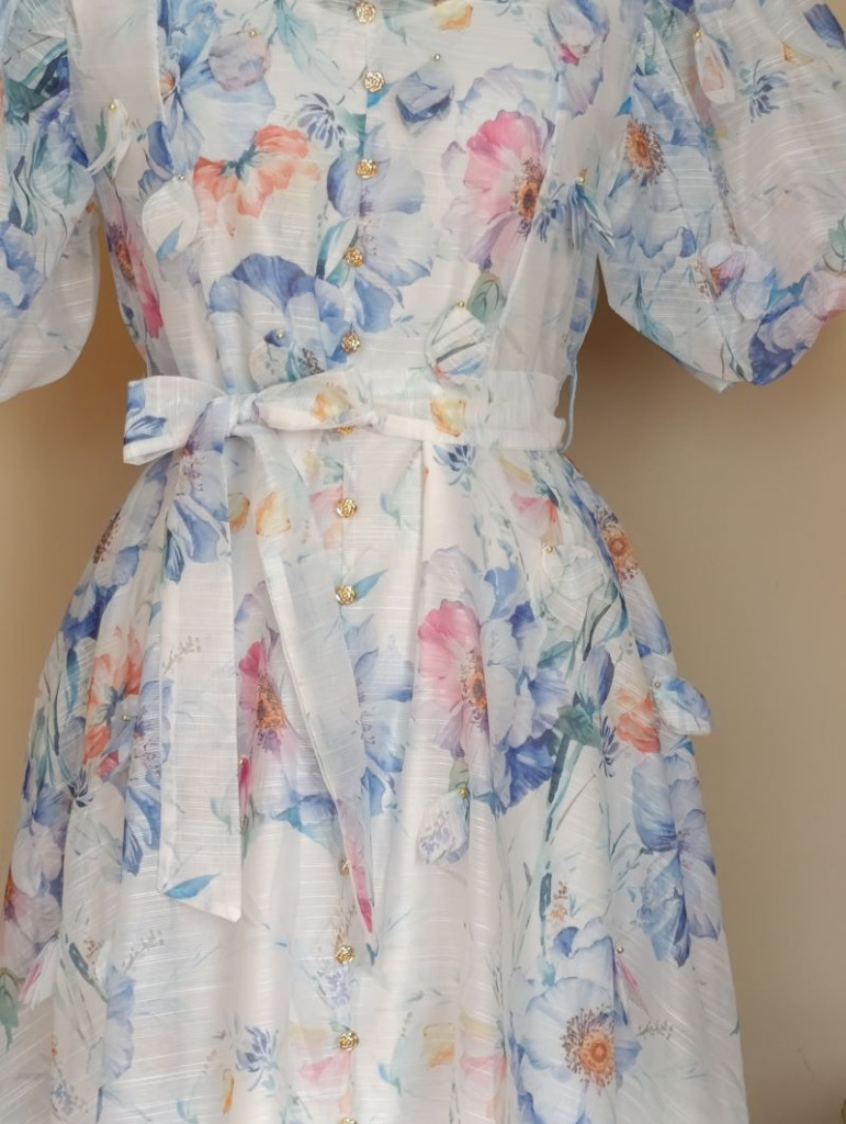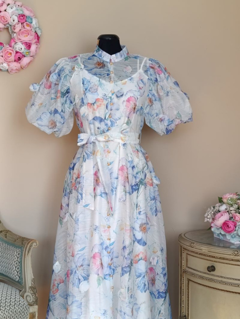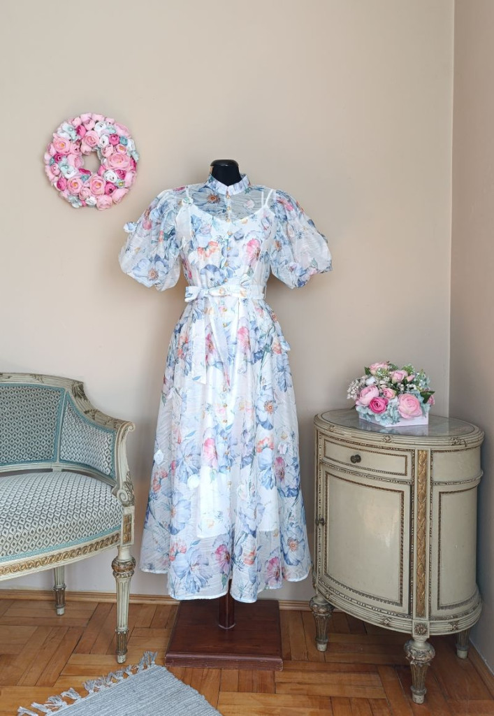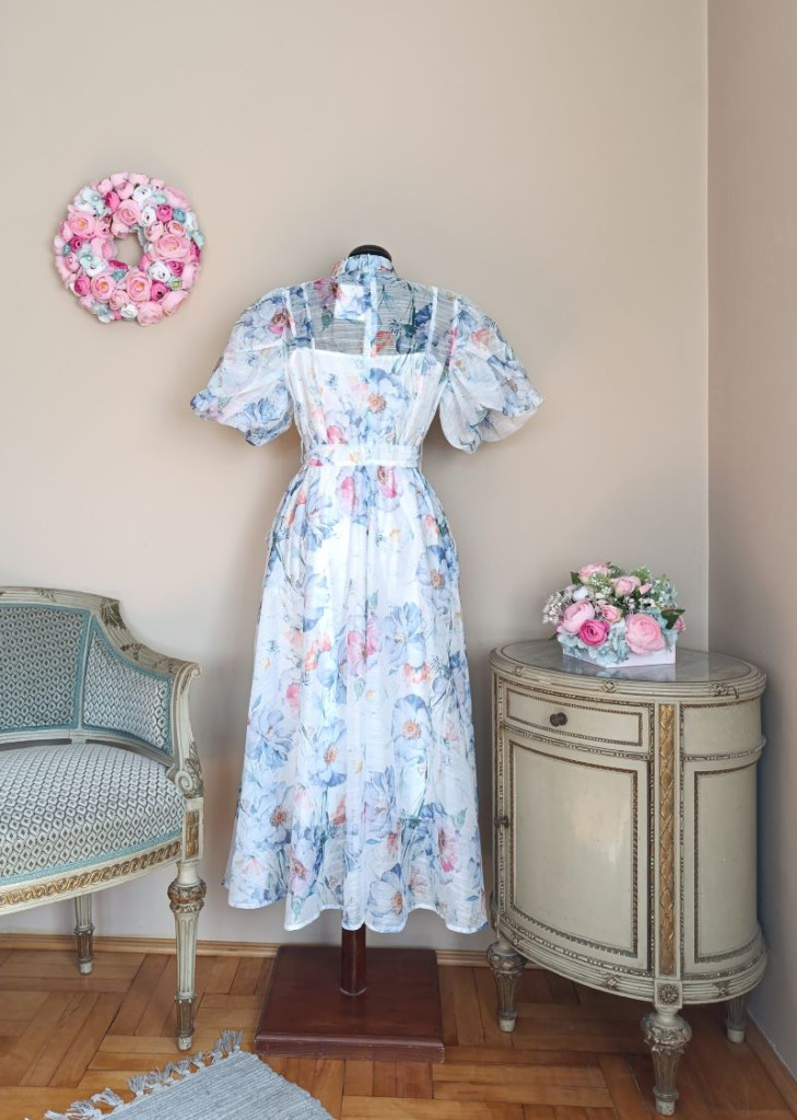 A ruha S/M méretben elérhető, de S-L méretig ajánlom. Hossza 124 cm, hátul cipzáros, ami megkönnyíti a fel és levételt.