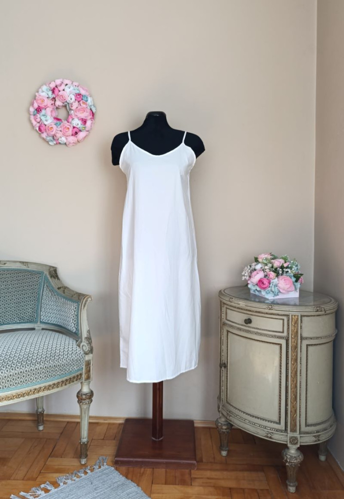 Mellbősége 102 cm-ig jó, dereka maximum 88 cm-ig. Van alatta egy trikós ruha, aminek a hossza 100 cm + a pántok, ami állítható, ennek a