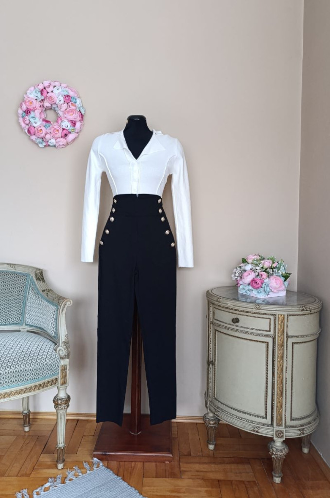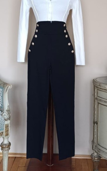 A nadrág elérhető S, M, L méretben, rugalmas anyagú, hátul cipzáras. Alakkövető darab