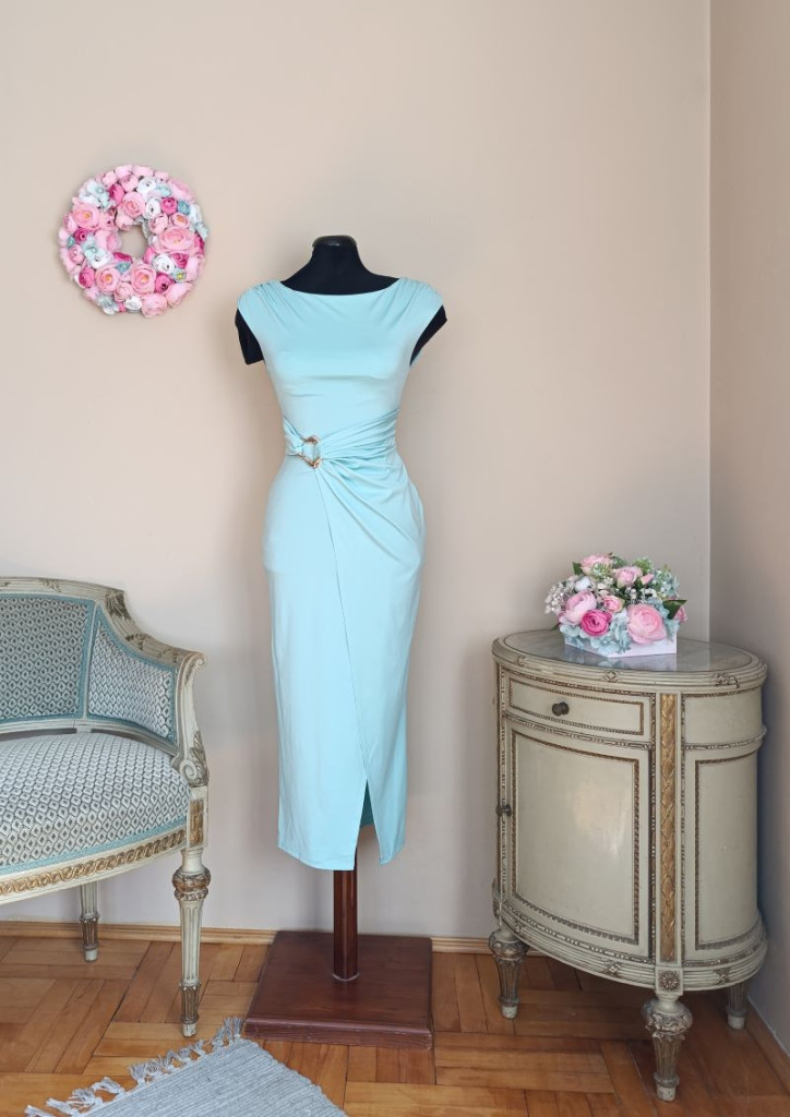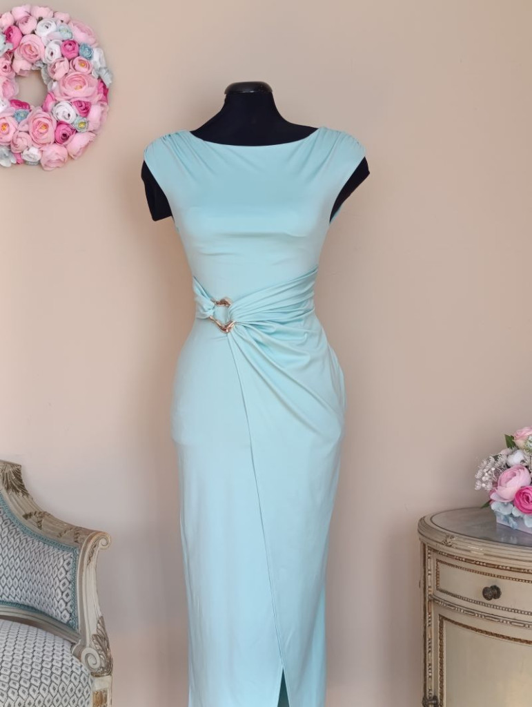 A ruha alakkövető, méret nélküli, XS-M méretig ajánlott. Hossza 120 cm, mellbősége 80-96 cm-ig nyúlik, dereka 60-80 cm-ig nyúlik