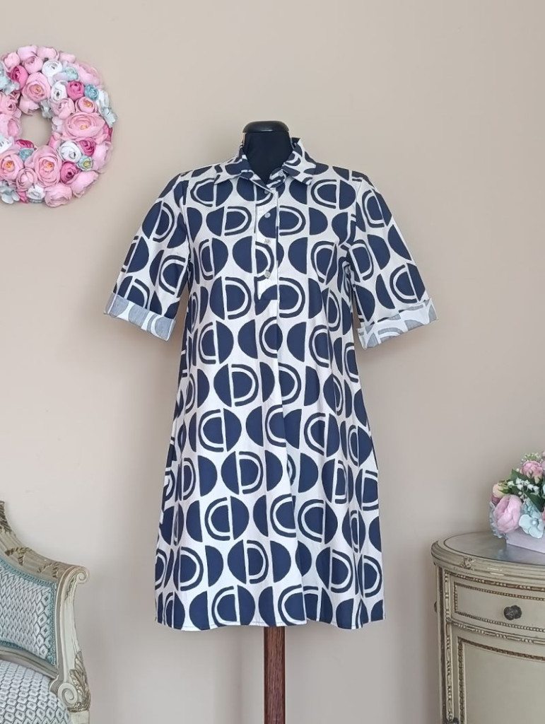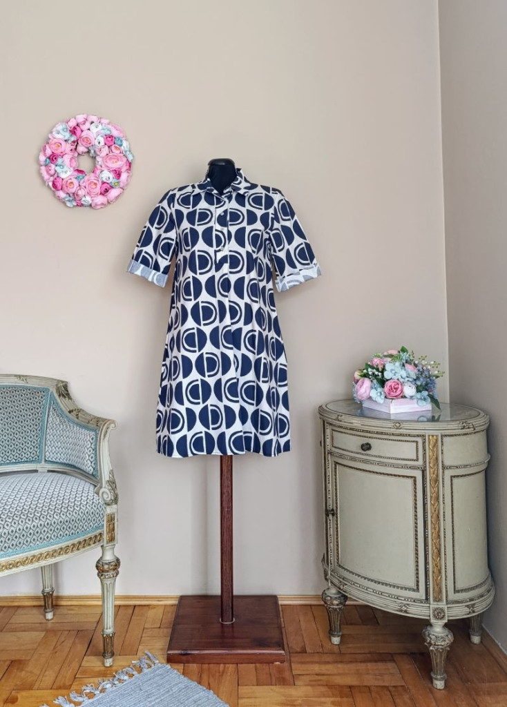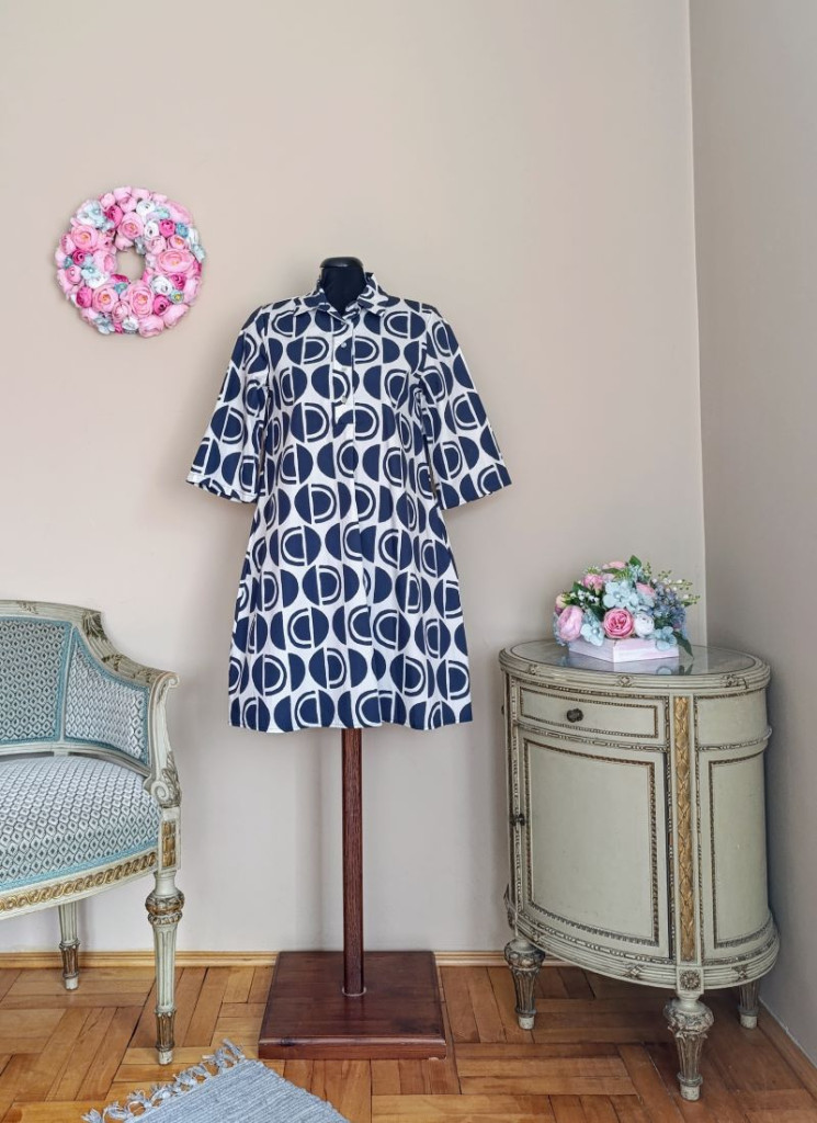 A ruha S-M méretig ajánlott. Hossza 90 cm, mellbősége 96 cm ( ha a felső két gomb nincs begombolva, akkor enged még kicsit) , derék 100 cn