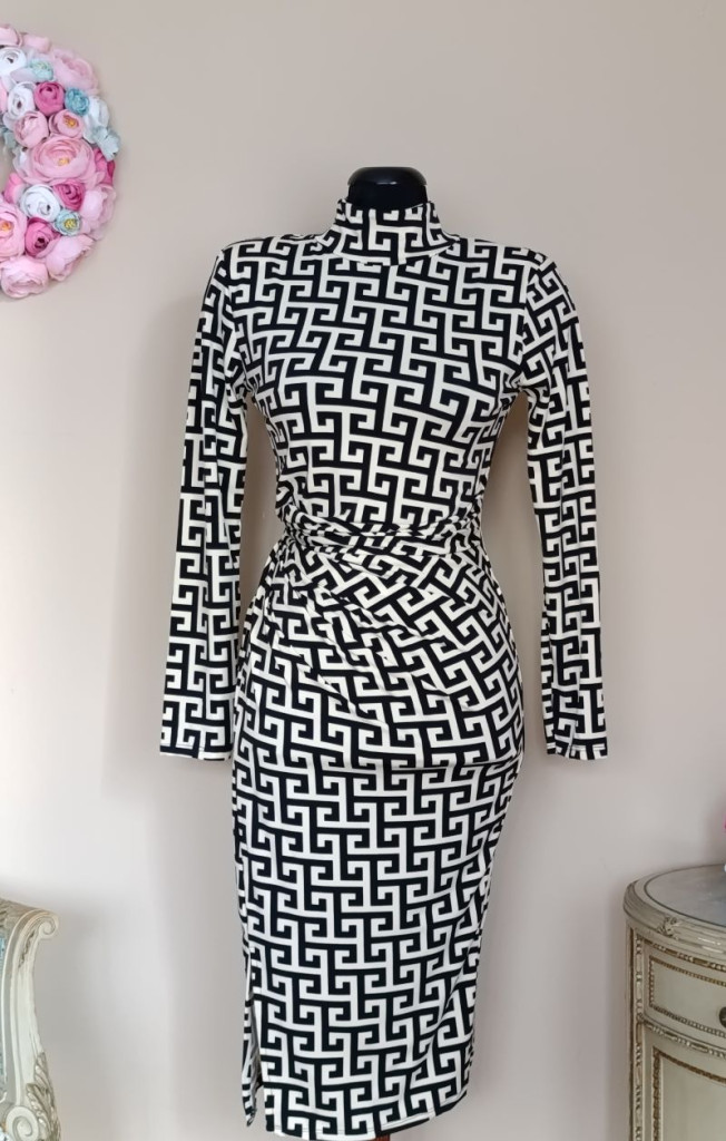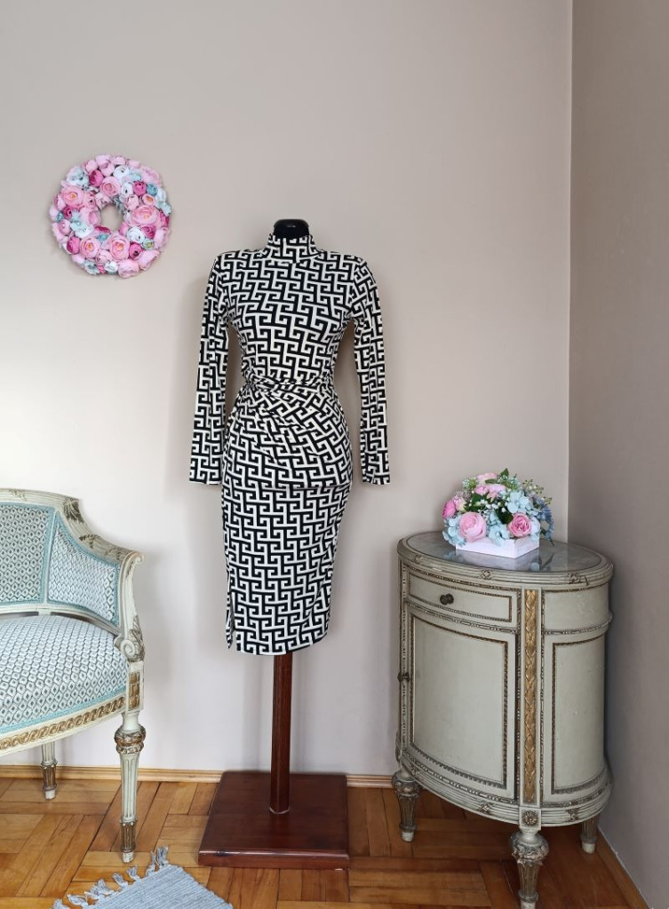 A ruha méret nélküli, S-L méretig ajánlott. Hossza 107cm, mellbősége 86-104 cm-ig nyúlik, hasnál ráncolt, válltöméssel rendelkezik,
