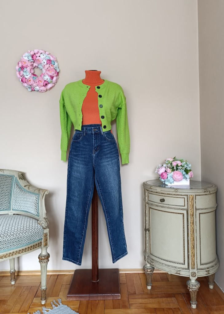Rövid fazonú darab, ami különösen jól mutat magas derekú nadrágokkal, szoknyákkal , illetve a derékhangsúlyos ruháknál is kiemelve