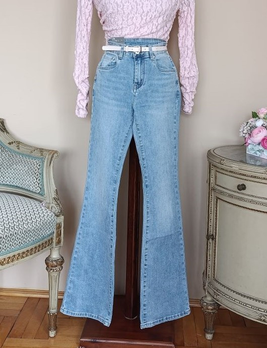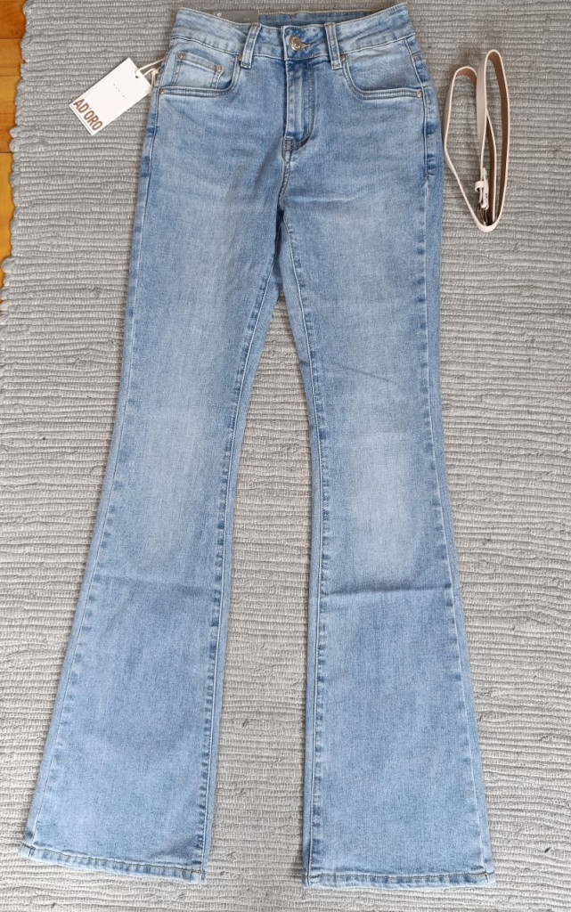 A farmer comb részen feszülős, enyhén magas derekú, rugalmas anyagú, kényelmes fazon. A fehér műbőr öv jár hozzá