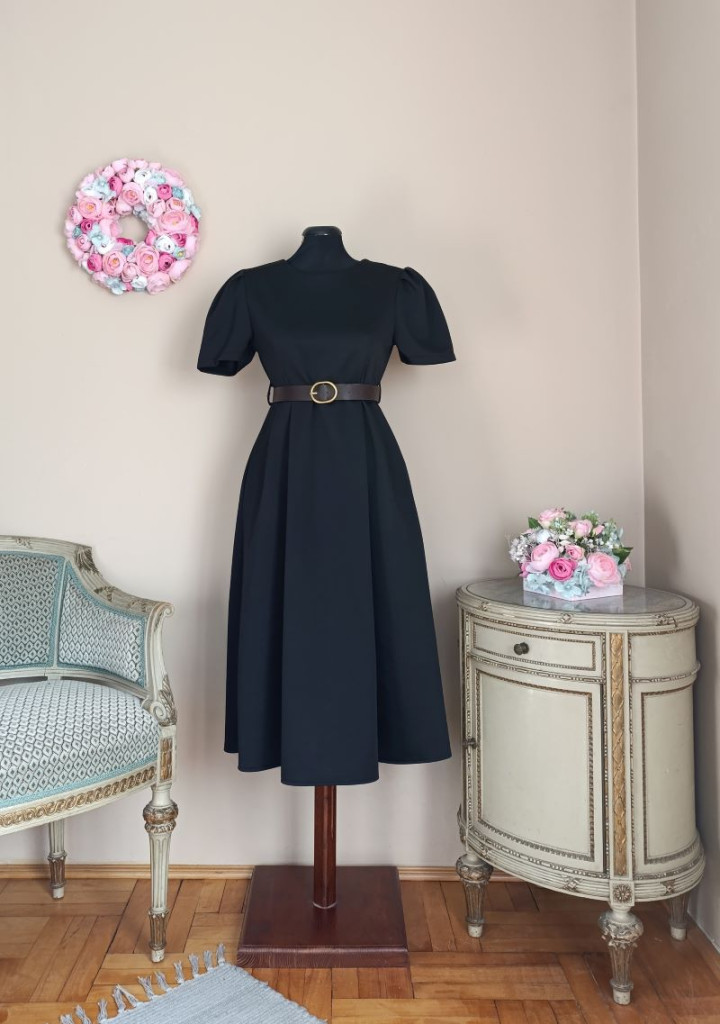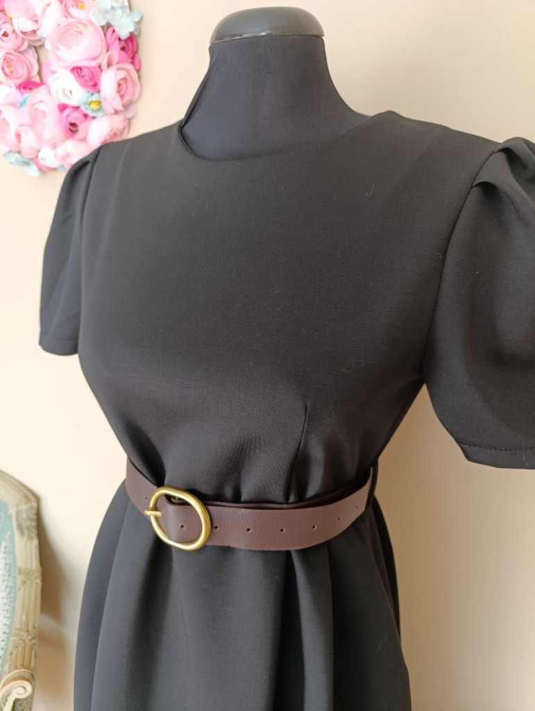 A ruha méret nélküli, S-L méretig ajánlott. Hossza 109 cm, mellbősége 90-105 cm-ig nyúlik. Anyaga nagyon puha, de van tartása, nem gyűrődős és