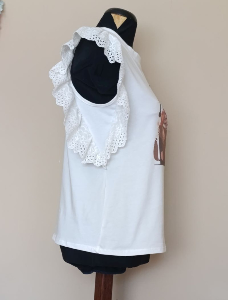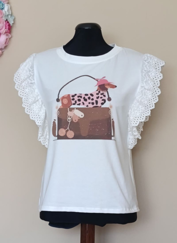 A póló méret nélküli, M- L méretig ajánlott. Hossza 58 cm, mellbősége 94-110 cm-ig jó